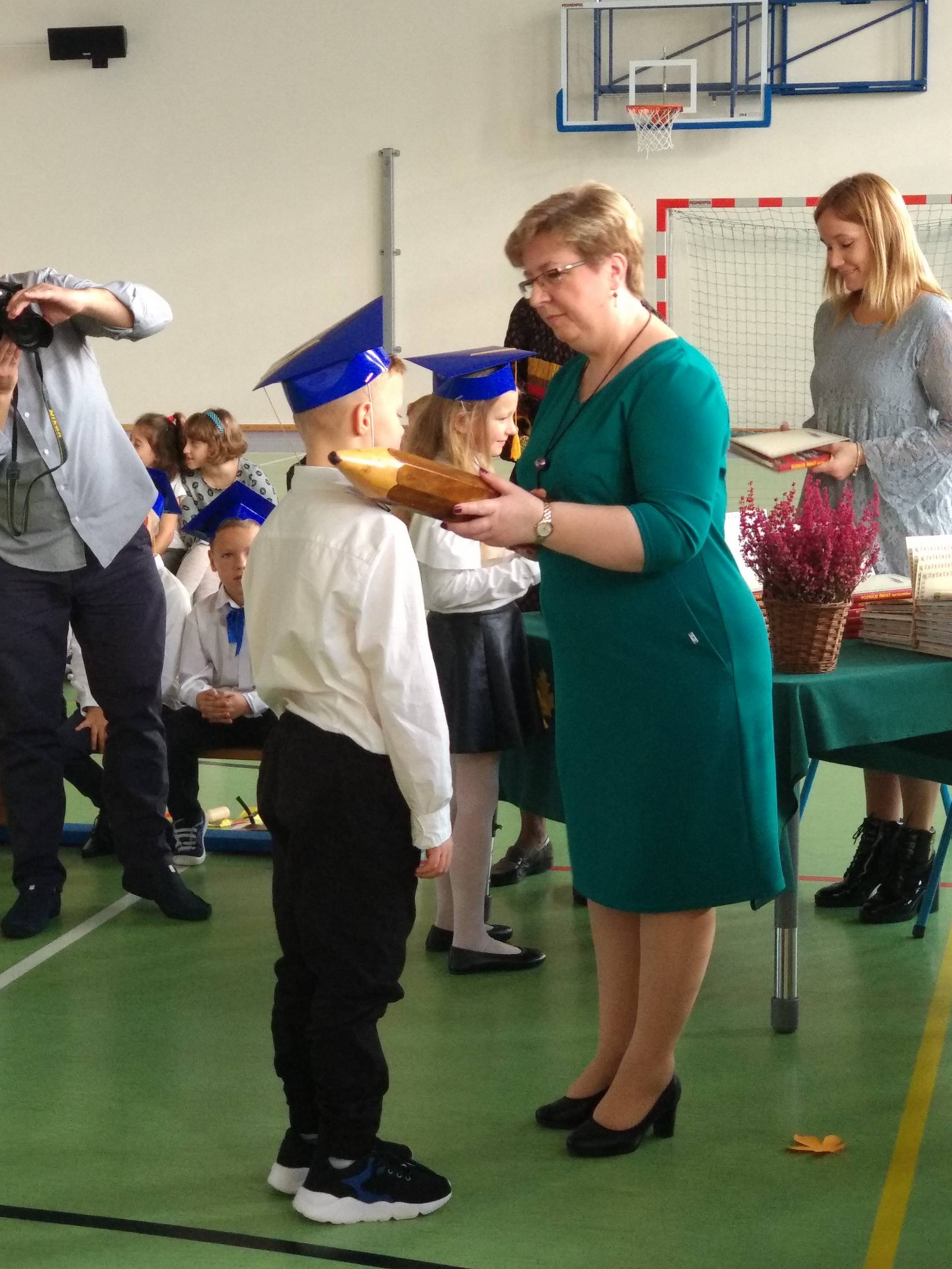 21 października przyjęliśmy do naszej szkolnej braci uczniów klas pierwszych. Nasi młodsi koledzy złożyli przysięgę na sztandar szkoły i zostali pasowani na ucznia "wielkim" ołówkiem prze panią dyrektor. Pokazali też czego już się nauczyli, a potrafią wiele. Były recytacje, piosenki i tańce. Ślubowanie złożyli też rodzice pierwszaków.